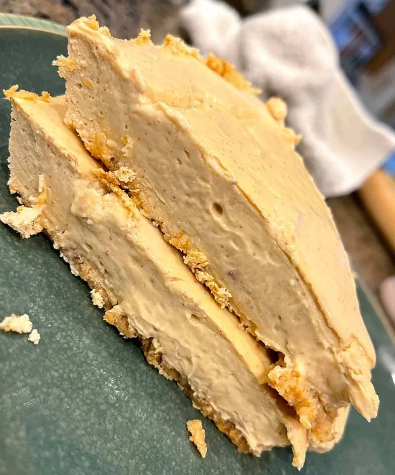 Graham crackers, liquid egg whites, and butter are used for the crust.